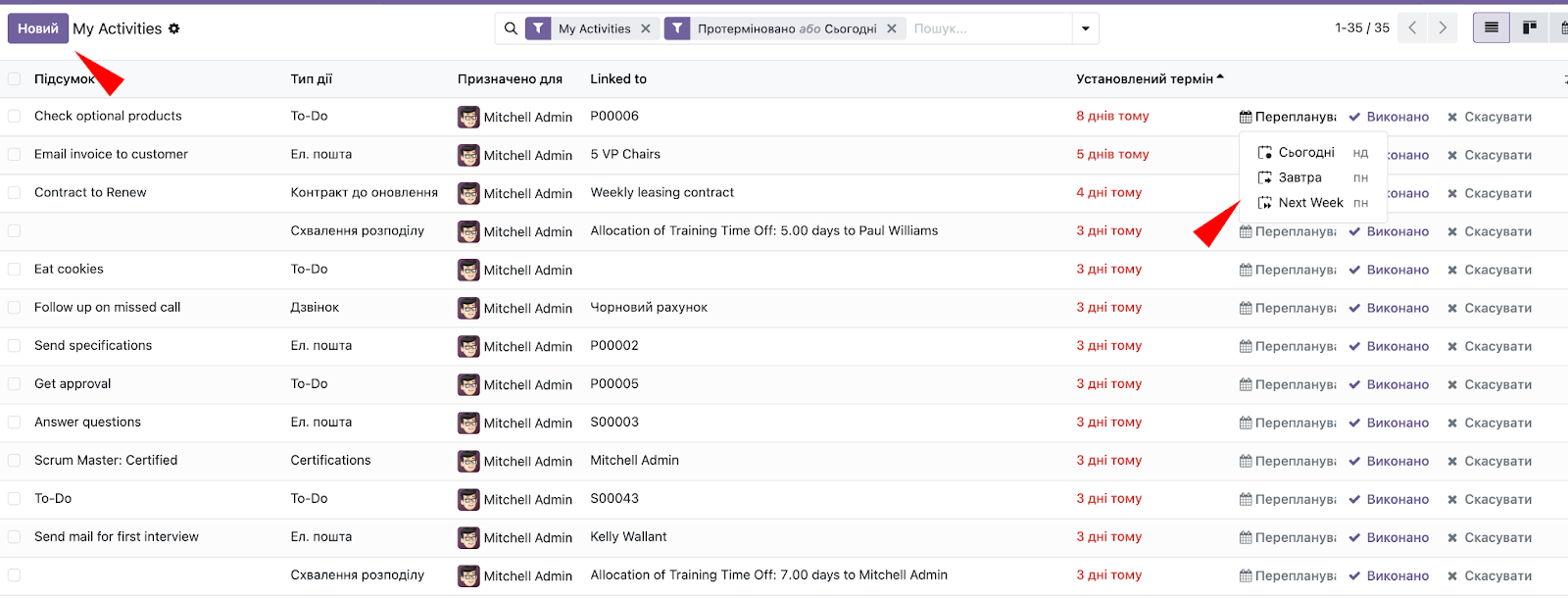 Результат: Activity View перетворився на повноцінний таск-менеджер всередині Odoo.