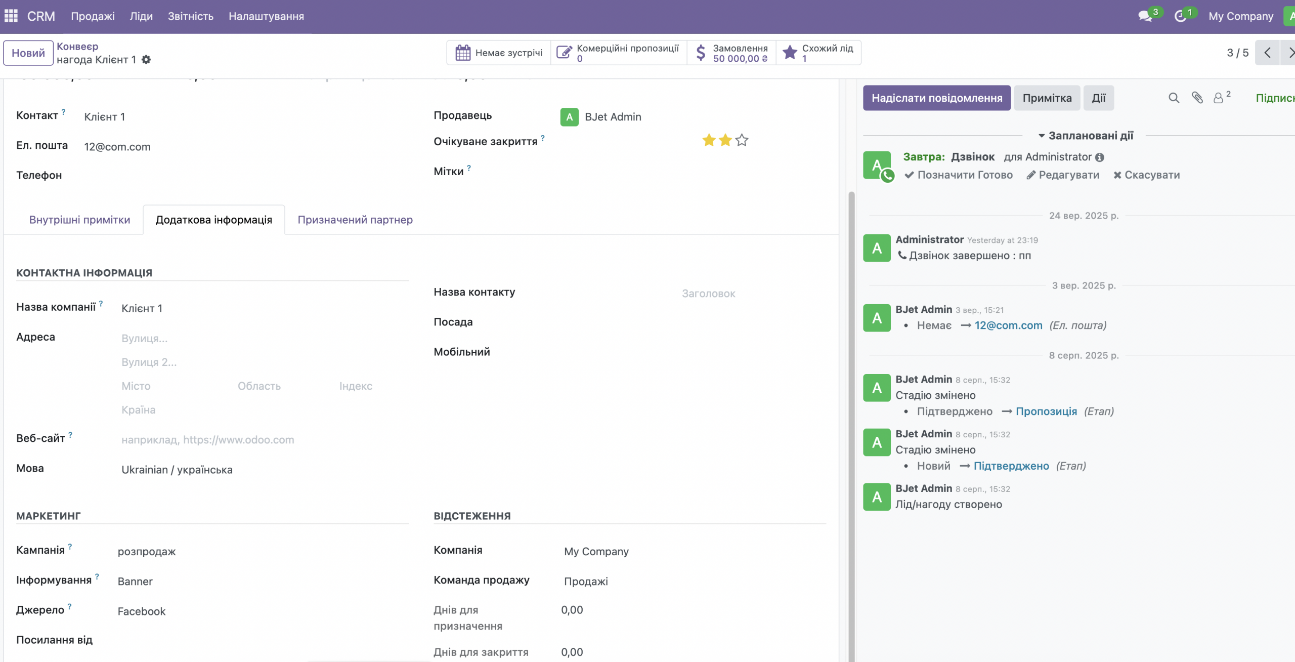 Відстежуйте потенційних клієнтів за каналами надходження – соціальні мережі, реклама, рекомендації. Створюйте картку ліда, призначайте відповідального менеджера і отримуйте нагадування про наступні дії. Ви завжди знаєте, хто з клієнтів “теплий” і готовий до покупки.