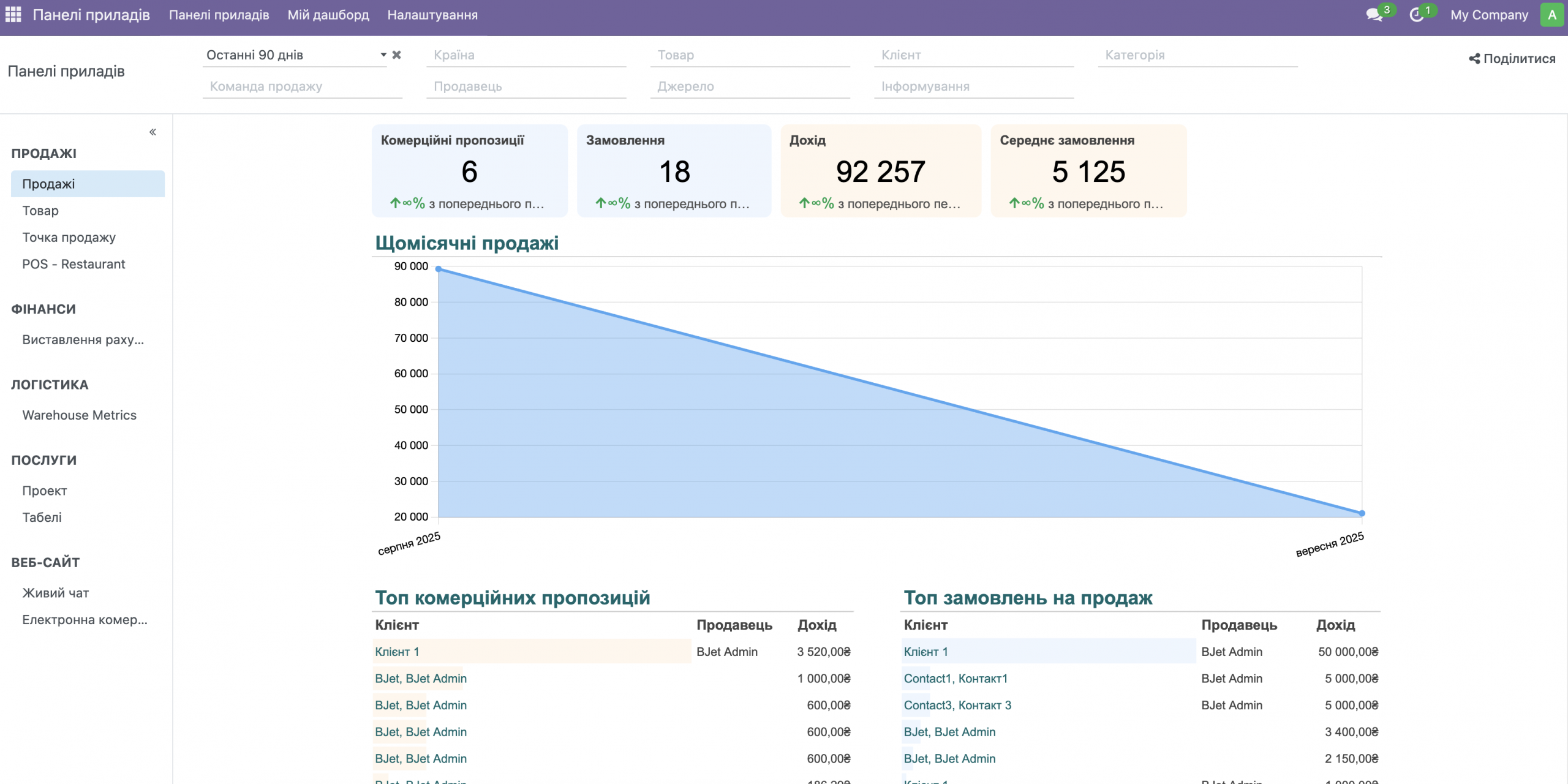 Odoo Community дає можливість бачити ключові показники бізнесу в одному місці – у зручному дашборді з даними в реальному часі.